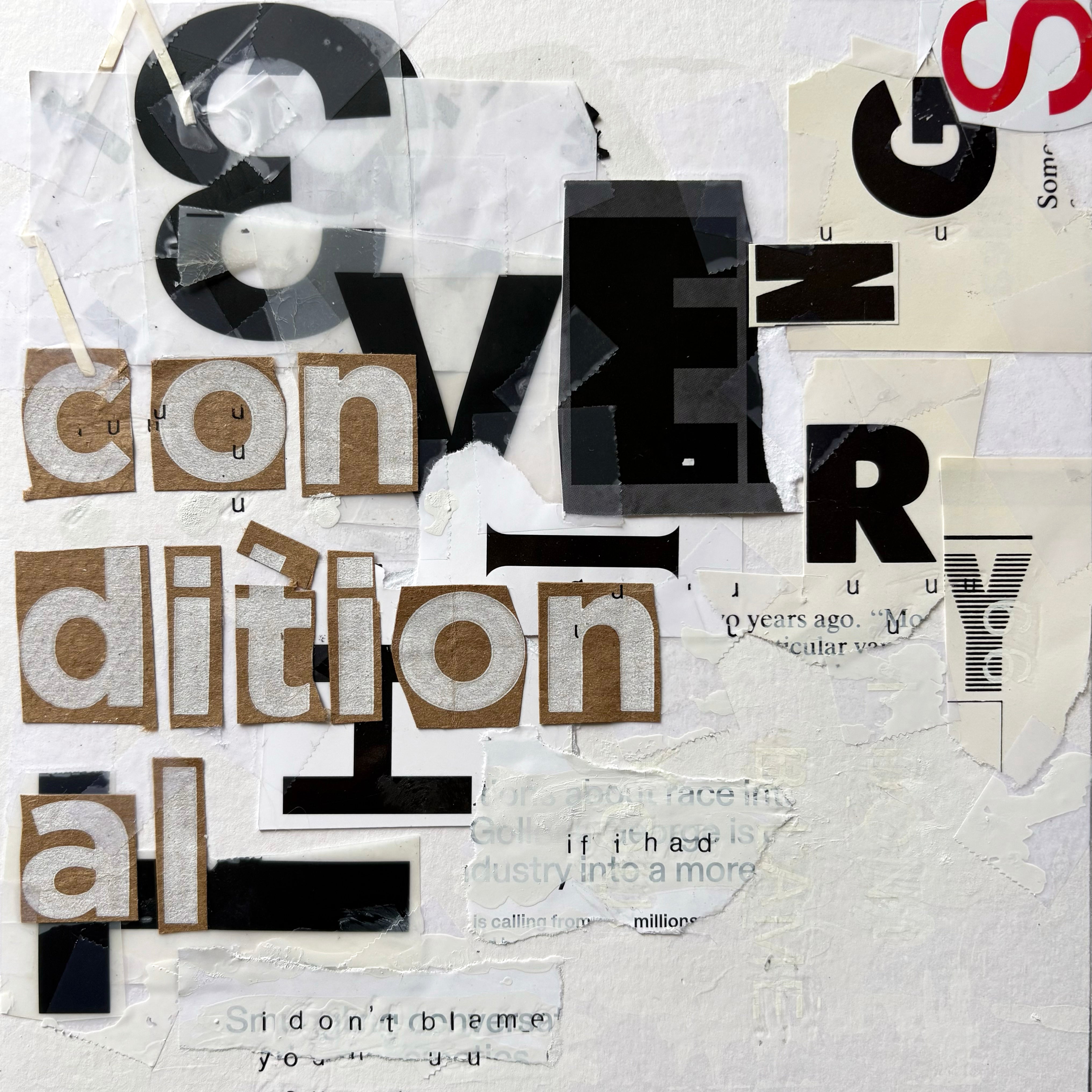 Sound in Print typographic sketch created by hand. Ingredients: Acrylic Paint, Paint Brush, Stencil, Canvas Board, Pencil, 3M Tape Box (for scraping).