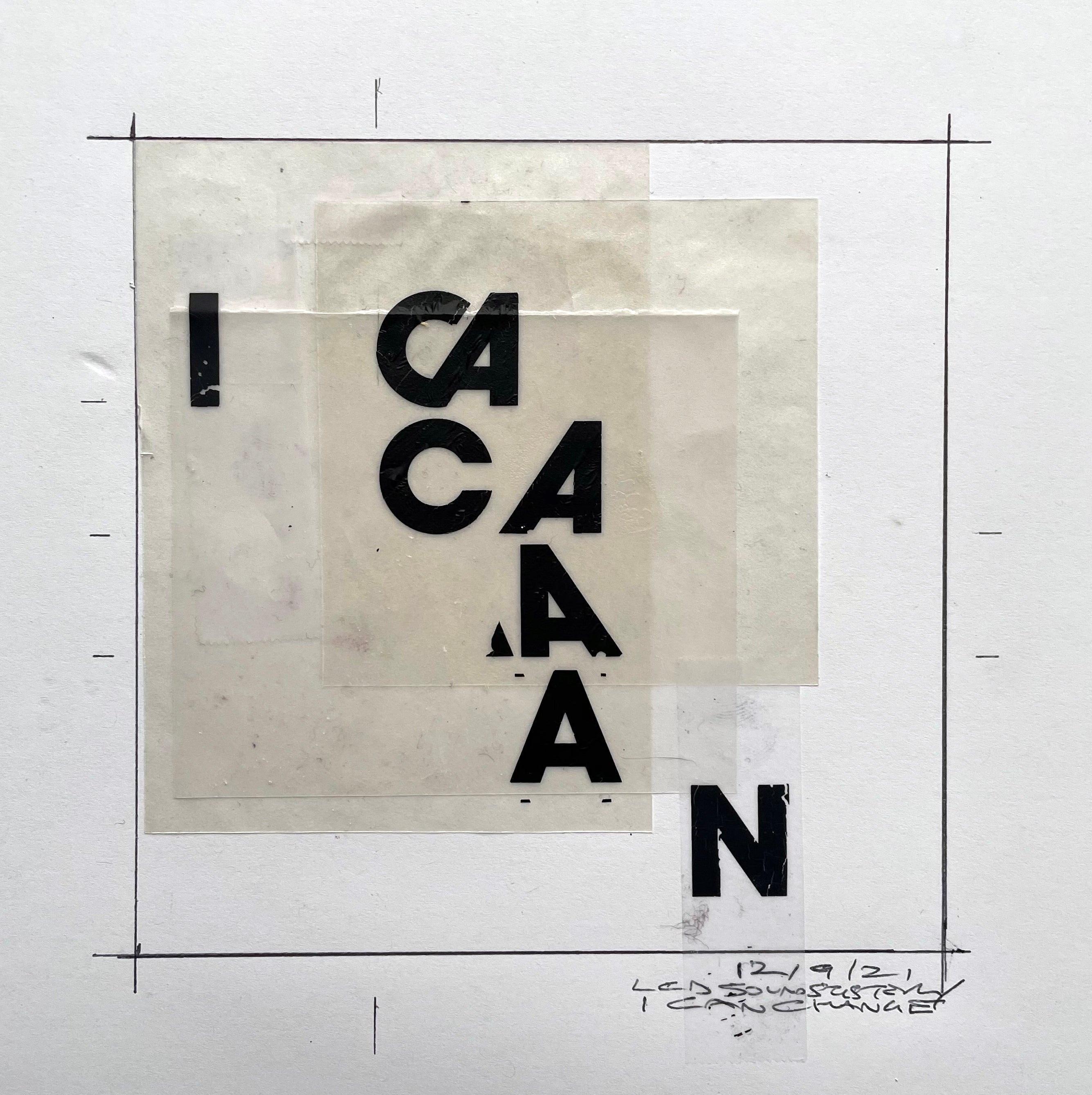 Sound in Print typographic sketch created by hand. Ingredients: Apperture Magazine, Letratone, Swann Morton Scalpel Blade Packaging, Bic White-Out Mini, Scotch Tape, Letratone Backing Sheet, Biro, Ruler, Scalpel, Paper. Art: 5" x 5" / Sheet: 11" x 17”.