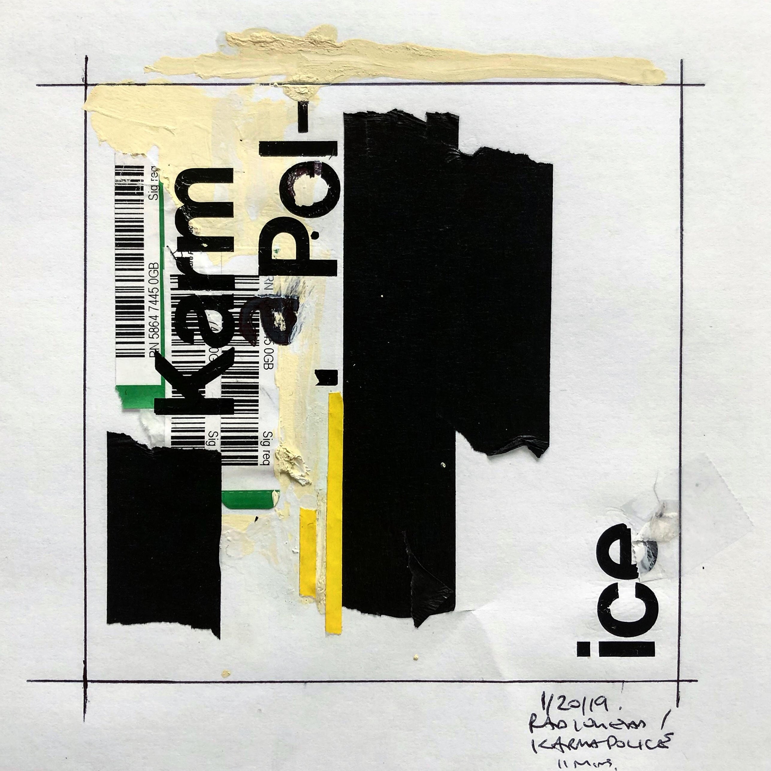 Sound in Print typographic sketch created by hand. Ingredients: Airport Baggage Labels, Lego Stickers, Carbon Paper, Letraset, Biro, Technical Pencil, Ruler, Pritstick, Tipex/Liquid Paper/White-Out. Art: 5" x 5" / Sheet: 11" x 17". Signed.
