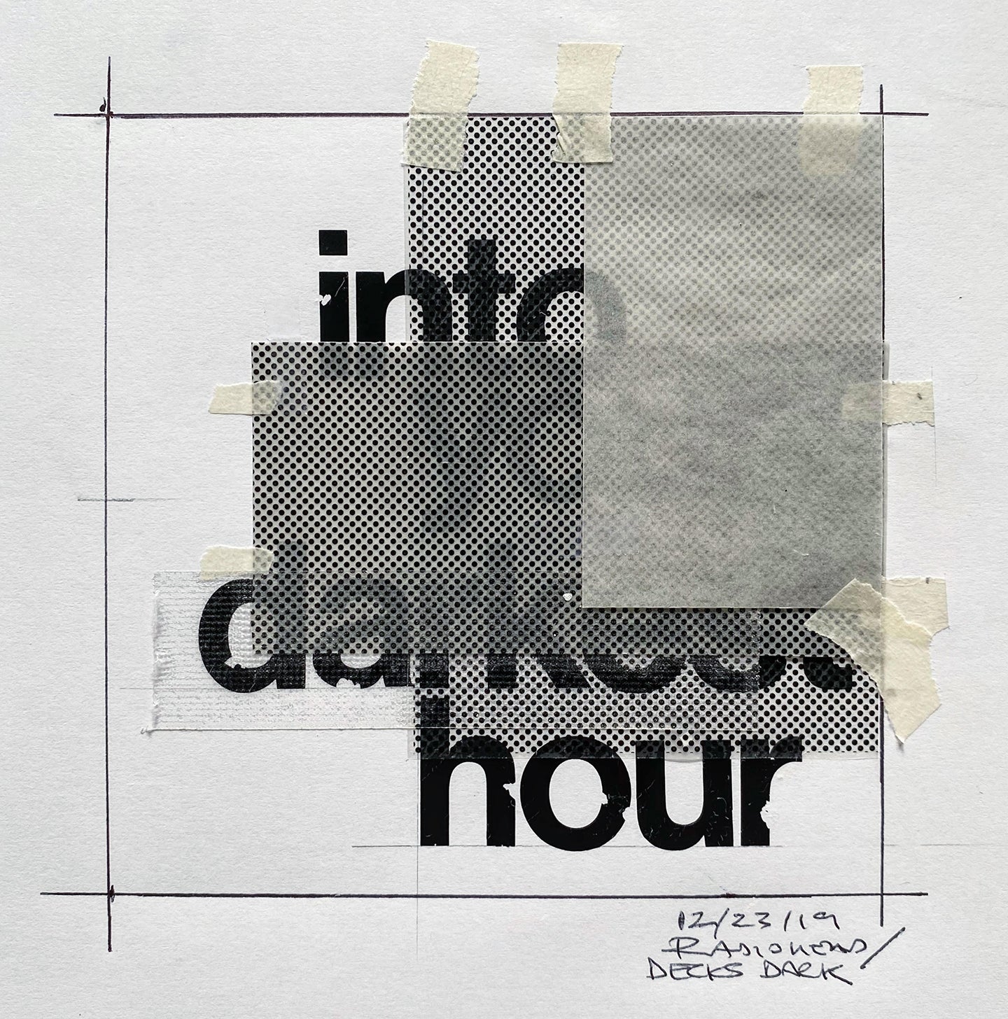 Sound in Print typographic sketch created by hand. Ingredients: Letratone, Mac-Set Type, Scotch Tape, Biro, Technical Pencil, Ruler, Tippex/Liquid Paper/White-Out. Art: 5" x 5" / Sheet: 11" x 17". Signed.