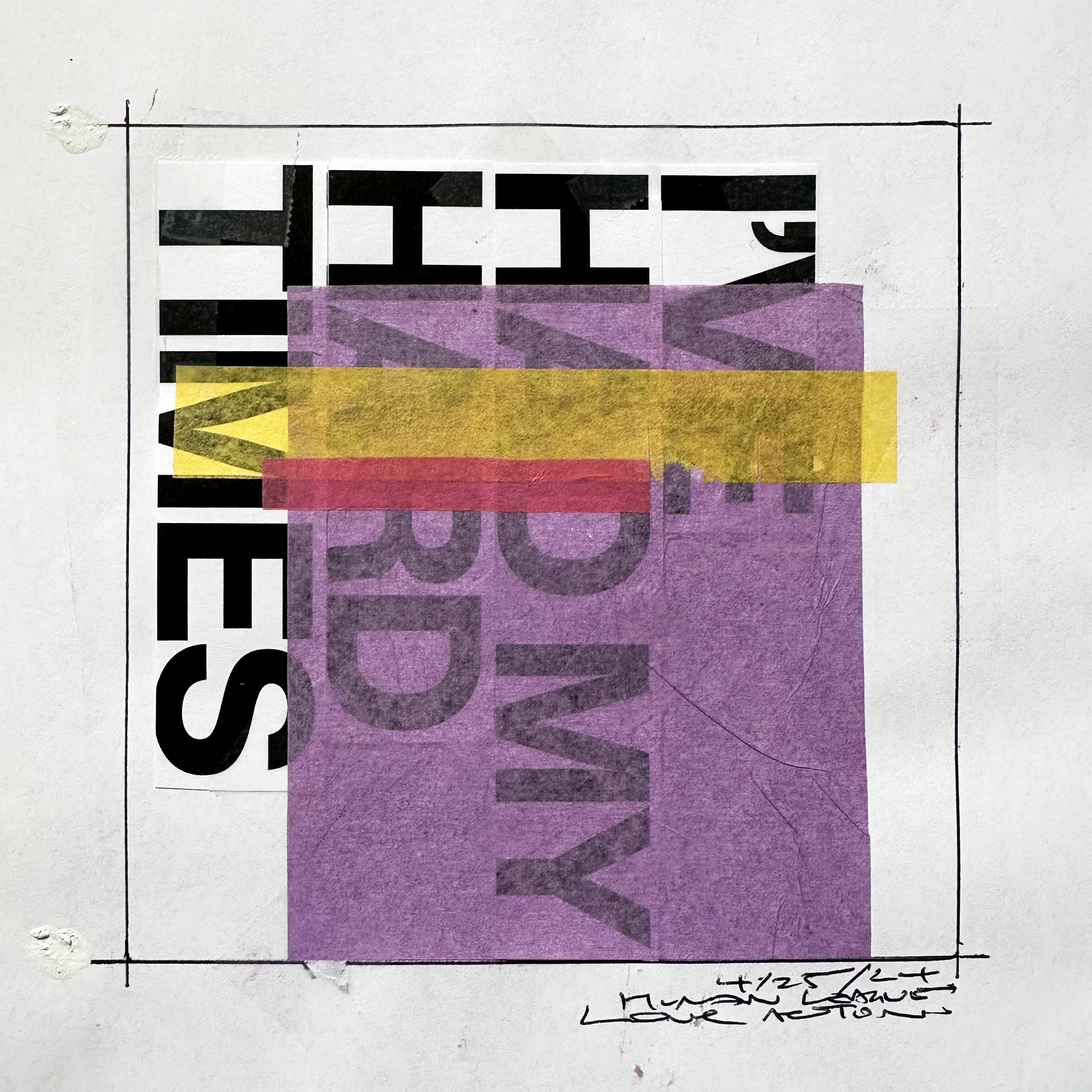 Sound in Print typographic sketch created by hand. Ingredients: Fluorescent Stickers, White Acrylic Paint, Prescription Box, Mac Set Laser Type, Ruler, Scalpel, Biro, Paper.